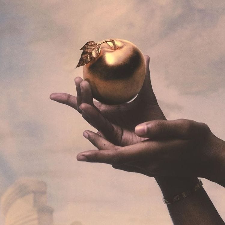 In her hand, she carried a golden apple, luminous and impossible to ignore.