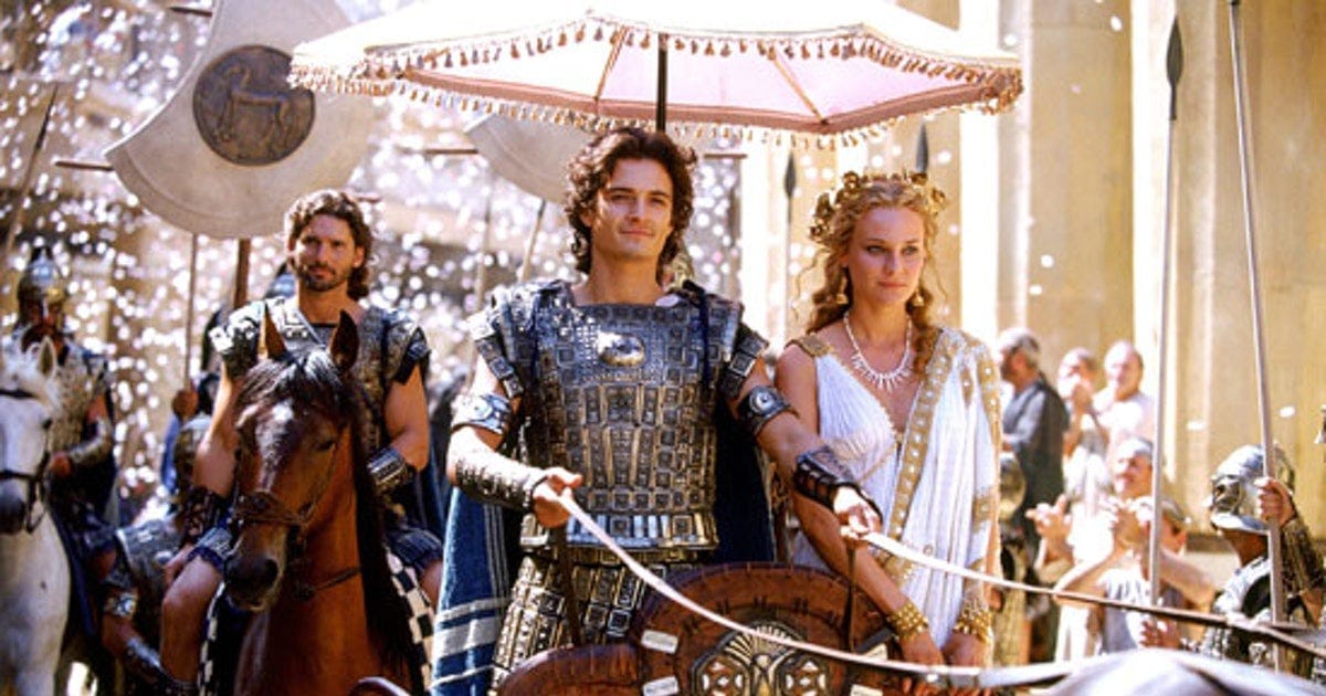 Ten years later, Troy collapses beneath a wooden horse.